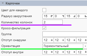 Количество колонок - предоставляет возможность определить количество колонок в элементе. По умолчанию, свойство установлено в значение 0, т.е. количество колонок для карточек в элементе рассчитывается автоматически.