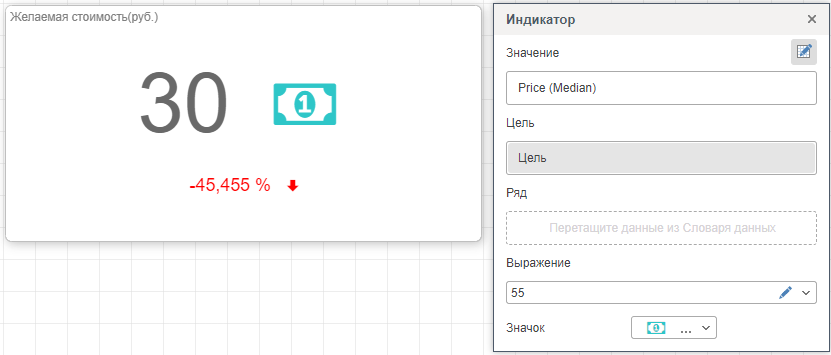 Для отображения Индикатора, необходимо добавить данные в поле Значение, которое будет выведено при помощи графического элемента.