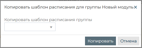 напротив группы, для которой будет копироваться шаблон. Во всплывающем окне выбрать группу, шаблон расписания которой необходимо скопировать и нажать кнопку