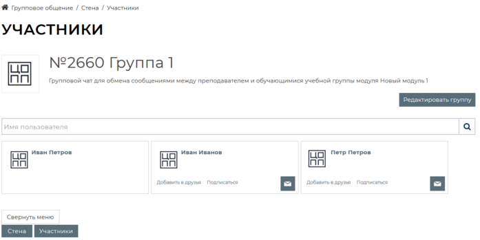 Чтобы просмотреть участников группы, необходимо нажать на кнопку