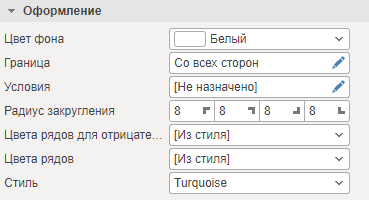При помощи свойства Граница на панели свойств в блоке «Оформление», или инструментов на вкладке Главная в дизайнере отчетов, изменить тип, размер, стороны, цвет границ элемента.