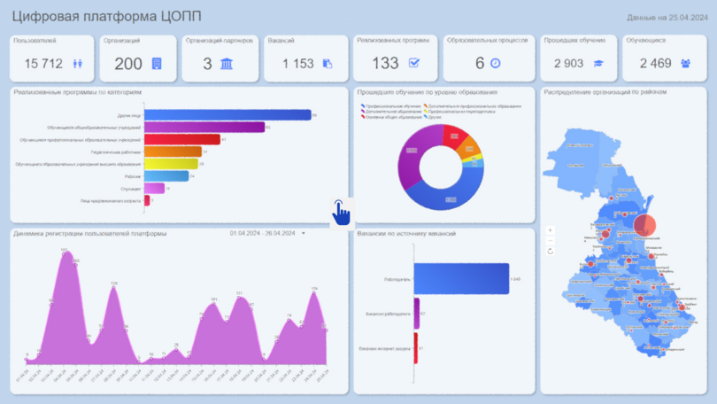 Мониторинг ЦОПП. Дашборды Страница содержит список дашбордов для координатора. Дашборд должен загружаться по клику на превью. Пример дашборда