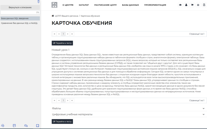 Для просмотра контента занятий необходимо переключать их в разделе «Занятия» в модуле. Для просмотра содержимого тестов или анкет, добавленных в урок, необходимо нажать на кнопку
