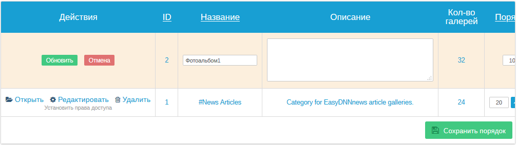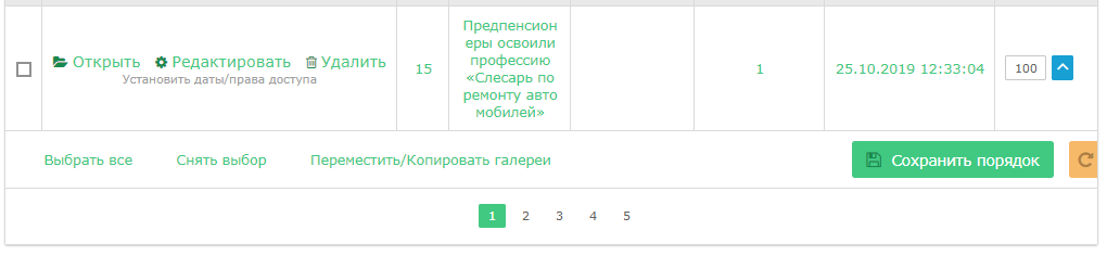 Управление галереями