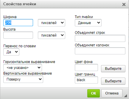 Если необходимо внести другие изменения в таблицу, необходимо перейти в Источник и добавить нужные атрибуты тегов таблицы и значения этих атрибутов HTML-кодом.