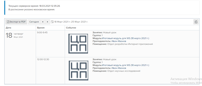 Расписание формируется из опубликованных образовательных процессов - их образовательных программ, модулей, занятий.