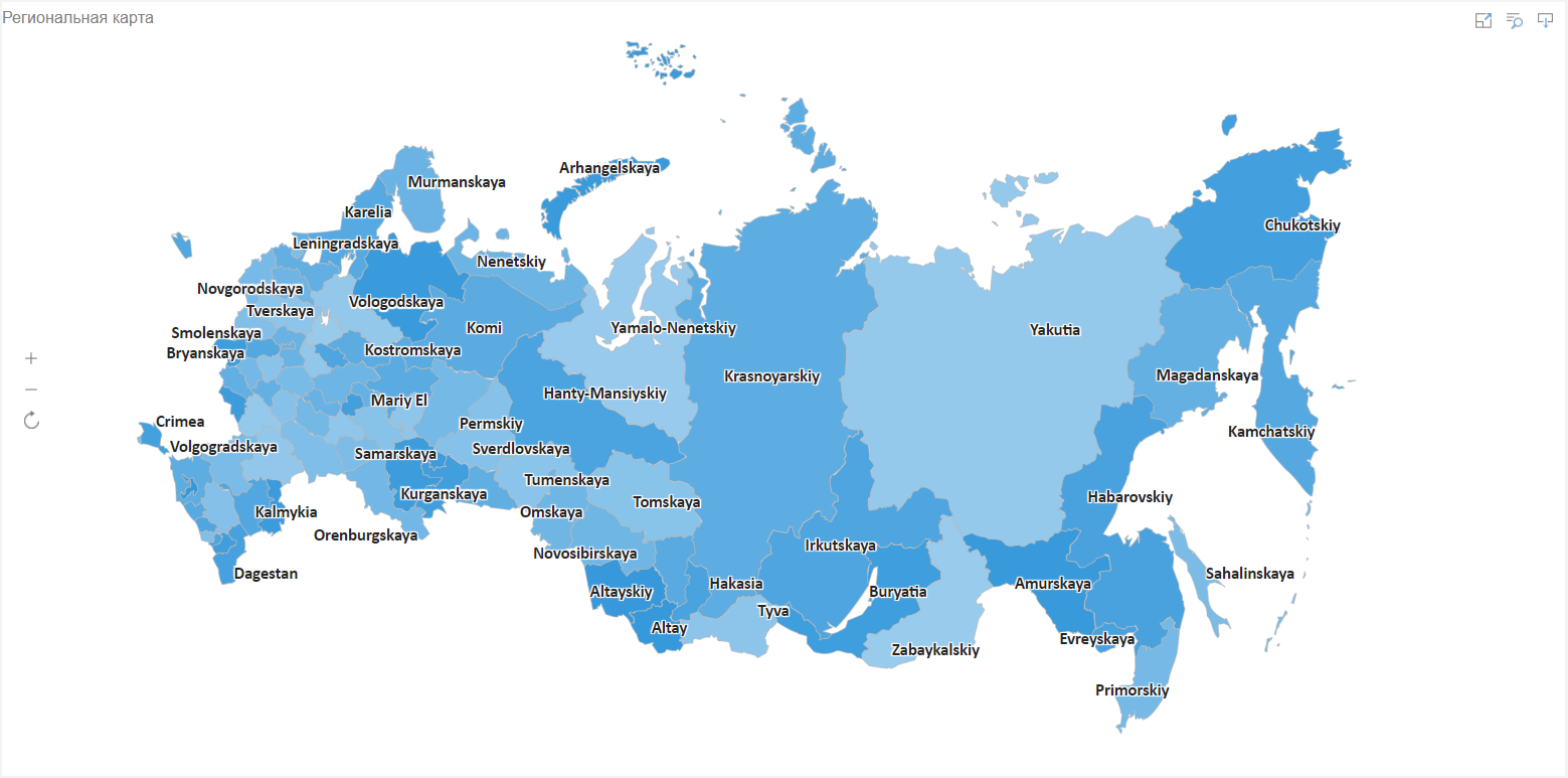 В региональной карте можно отобразить какое-либо значение, с привязкой к определенному географическом объекту. Список географических объектов зависит от выбранного вида карты.