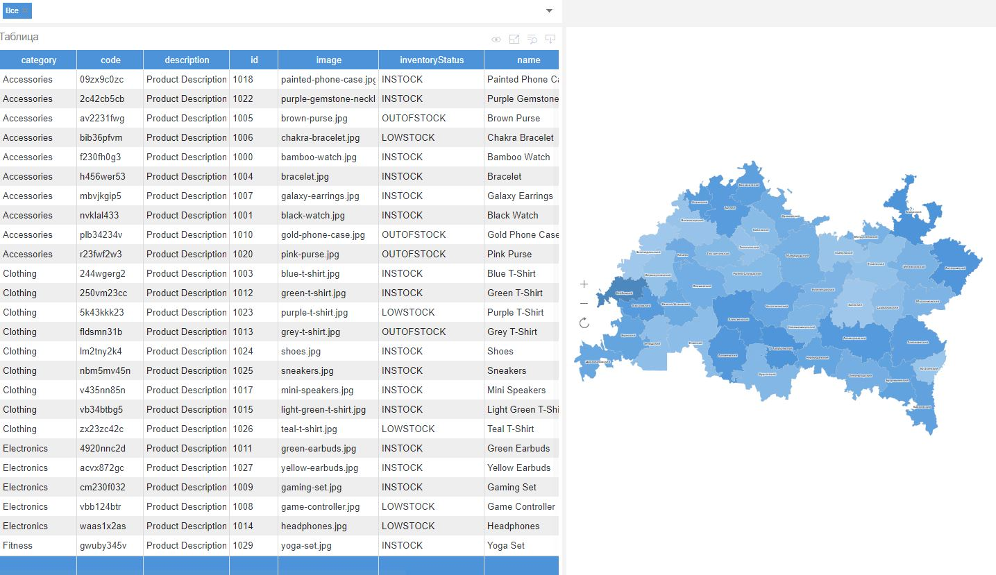 Элемент Региональная карта предоставляет возможность отобразить какое-либо значение с привязкой к географическому объекту.