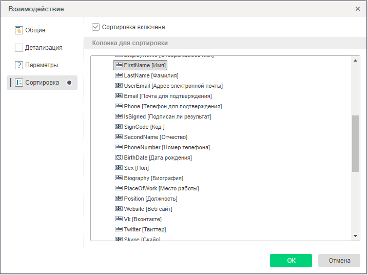 В открывшемся редакторе будут доступны варианты интерактивного взаимодействия с отчетом и его элементами, такие как: