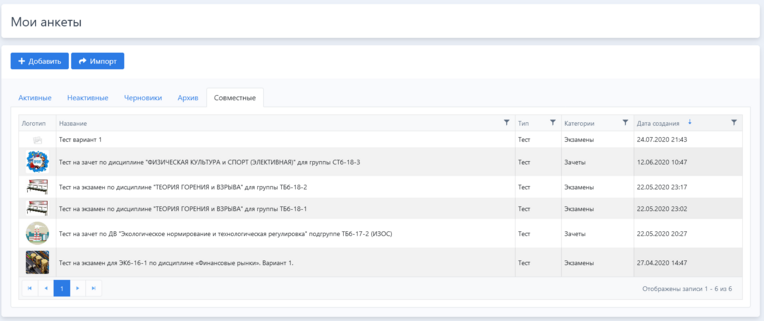 Для создания опросов необходимо зайти в раздел «Мои анкеты» или «Все анкеты» (ссылка на раздел находится в ниспадающем меню при нажатии на стрелочку рядом с отображаемым именем).