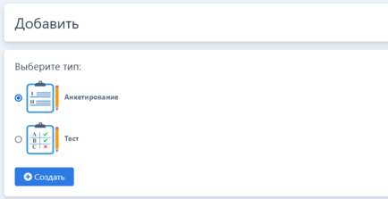 , выбрать тип {Анкетирование/Тест} и нажать кнопку [Создать].
