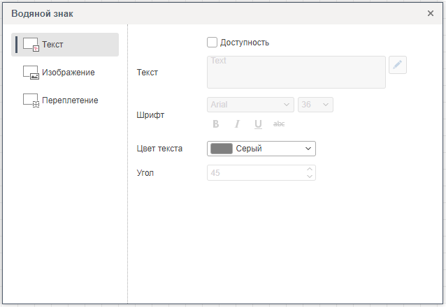 Заполнить графы «Текст водяного знака» (при необходимости) и выбрать «Изображение водяного знака» (при необходимости);